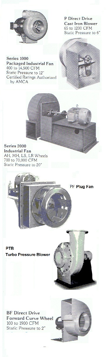 Stock of tubeaxial & vaneaxial inline duct fans, blower and fan repair / balancing, replacement centrifugal and axial fan blades, axial duct fans, aluminum pressure blowers, FRP ventilators, dust collectors blowers fans, dust collection fan ventilators, high temperature oven circulation fans, explosion proof ventilatoprs, spark reistant fans and blowers, induce & force draft fans, fan blower impellers. Sales of regenerative blowers, high pressure ventilators, positive displacement pressure blowers.